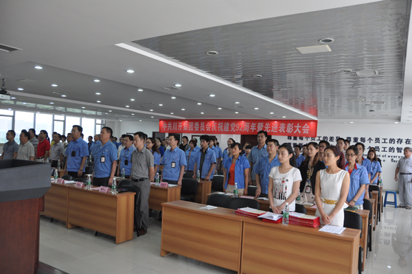 7月1日下午,集團(tuán)黨委在六樓會議室組織召開慶祝建黨92周年大會。集團(tuán)黨委委員、各公司總經(jīng)理、各黨支部委員以及黨員代表150余人參加了會議。會議由黨委委員王洪主持。