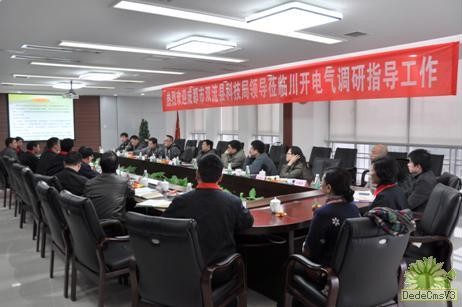 為深入推動四川省重大科技成果轉(zhuǎn)化工程的實施,加快雙流縣科技成果轉(zhuǎn)化工作,3月7日,成都市科技局高新處伍川副處長、法規(guī)處黃海副處長、雙流縣新能源研究院陳旭院長、雙流縣科技局徐富瓊副局長一行赴川開電氣股份有限公司考察科技成果轉(zhuǎn)化和自主創(chuàng)新工作。我公司圍繞科技創(chuàng)新和科技成果轉(zhuǎn)化工作內(nèi)容向市、縣科技局領(lǐng)導(dǎo)作了工作匯報,重點介紹了高壓輸配電開關(guān)設(shè)備關(guān)鍵技術(shù)產(chǎn)業(yè)化應(yīng)用、AP1000新型抗震電纜橋架及支撐系統(tǒng)國產(chǎn)化應(yīng)用、DY系列交流和直流一體化電源系統(tǒng)共三個項目的成果轉(zhuǎn)化工作。市科技局伍處長對川開電氣實施的科技成果轉(zhuǎn)化工作給予了鼓勵和認(rèn)可。