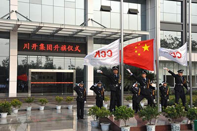 ??? 2009年7月20日早上8點(diǎn)整,集團(tuán)總部、川開電氣、快速電梯、村田機(jī)械、西明電氣、川開進(jìn)出口、川開建設(shè)等公司全體干部員工,精神飽滿、整齊列隊(duì)在集團(tuán)新落成的辦公大樓前廣場(chǎng)上,舉行了莊嚴(yán)、隆重的升旗儀式。由此,標(biāo)志著集團(tuán)公司及所屬子公司整體搬遷工作順利完成,這也是集團(tuán)公司自1980年成立以來(lái),再一次開創(chuàng)發(fā)展的新局面,具有重大歷史意義,全體干部員工共同見(jiàn)證了這一歷史時(shí)刻。