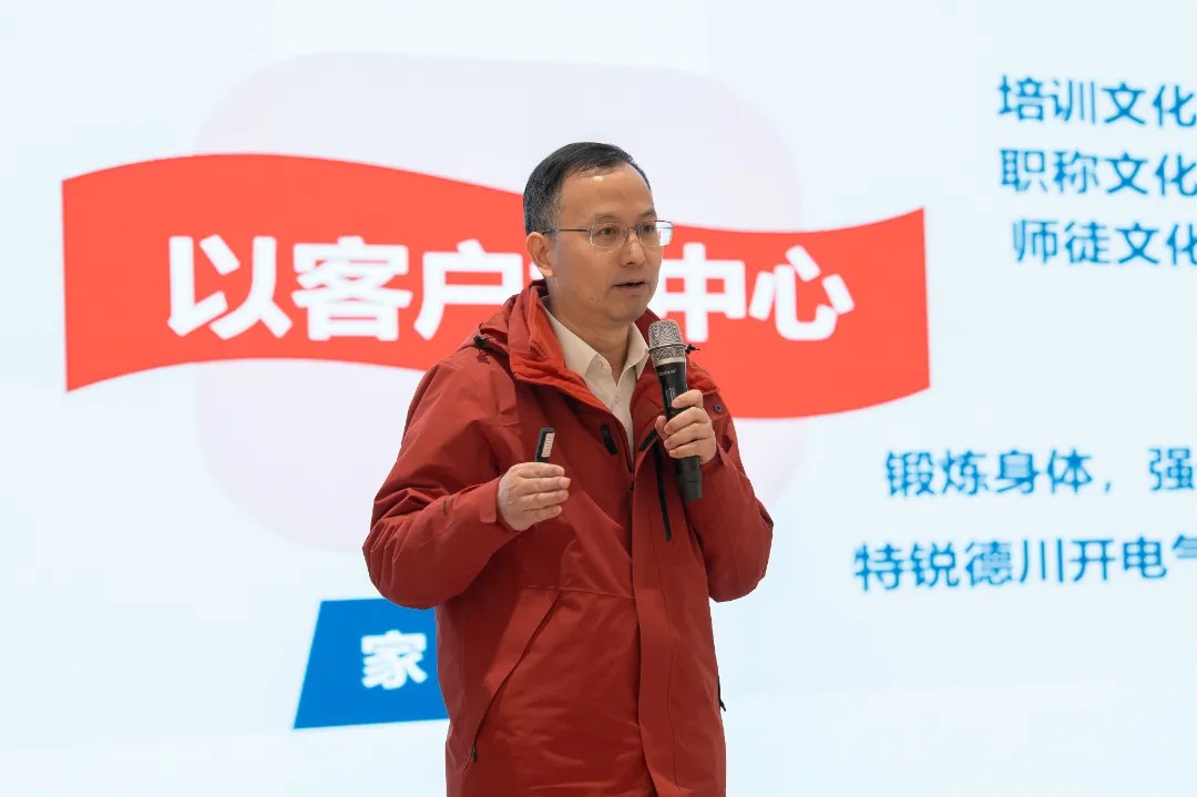 股份公司副總裁、特銳德川開電氣總經(jīng)理?xiàng)罱茏髁祟}為《2025年度工作報(bào)告及2026年度工作規(guī)劃》的重要報(bào)告。報(bào)告系統(tǒng)梳理了過去一年公司在經(jīng)營業(yè)績、項(xiàng)目運(yùn)營、產(chǎn)品研發(fā)突破、供應(yīng)鏈能力鍛造、運(yùn)營提效、質(zhì)量管控、業(yè)財(cái)融合、增利分享價(jià)值驅(qū)動(dòng)、西部會(huì)客廳建設(shè)等方面取得的顯著成績,并圍繞新一年高品質(zhì)、低成本、高效率及“六感”“六減”“六化”總目標(biāo),向全體戰(zhàn)友明確要打贏五大攻堅(jiān)戰(zhàn)役,實(shí)現(xiàn)再突破、真改變,做到“認(rèn)知+行動(dòng)”雙落實(shí),以小改變催生大改變。